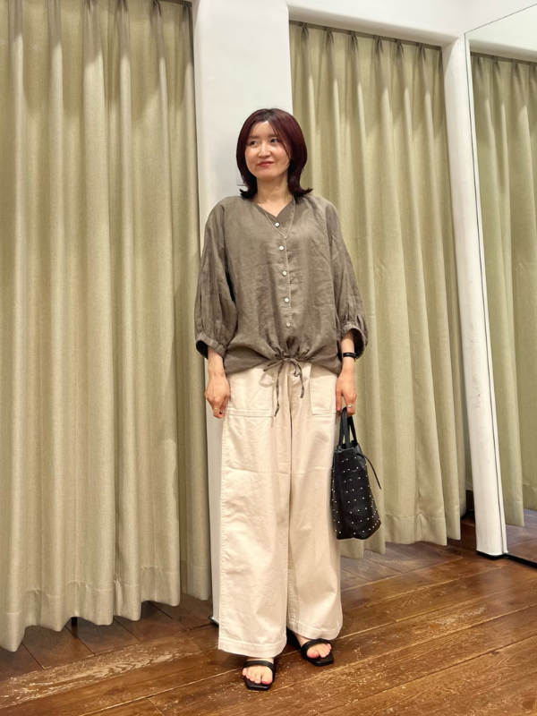 亞麻抽繩蝙蝠袖罩衫