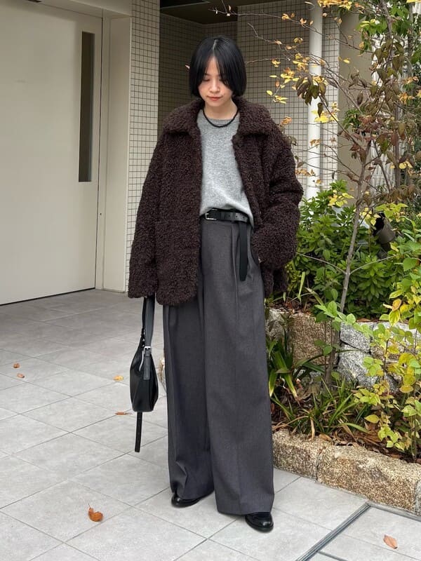 【新色追加】混毛料打褶碎褶直筒褲