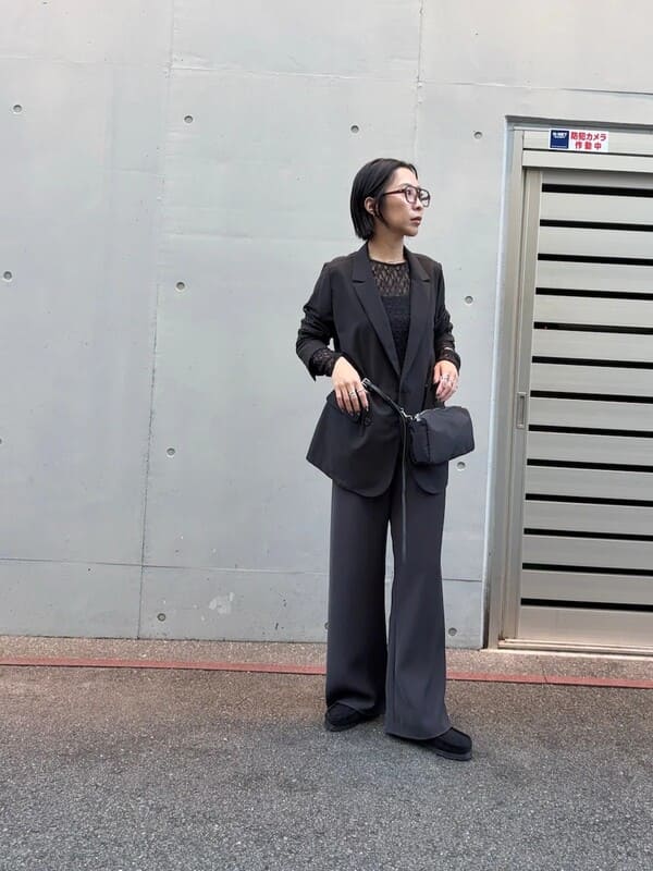 混羊毛雙排扣西裝外套
