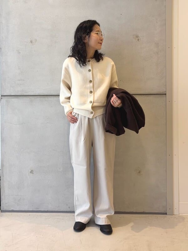 羊毛混喀什米爾墊肩開襟衫