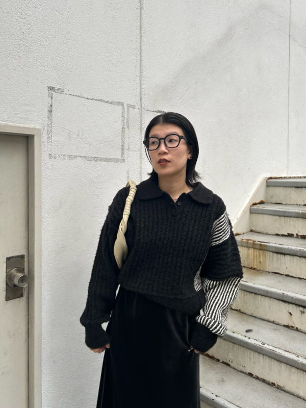 配色設計袖針織衫