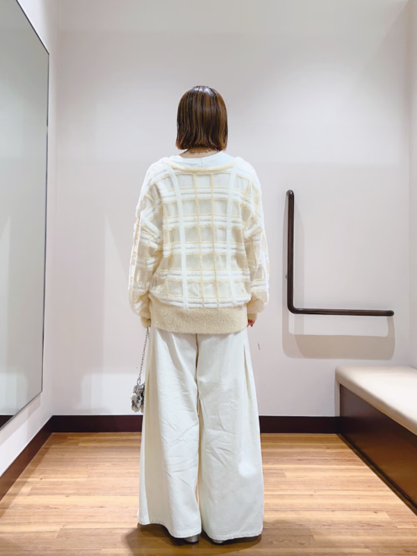 透膚格紋羽毛紗針織衫
