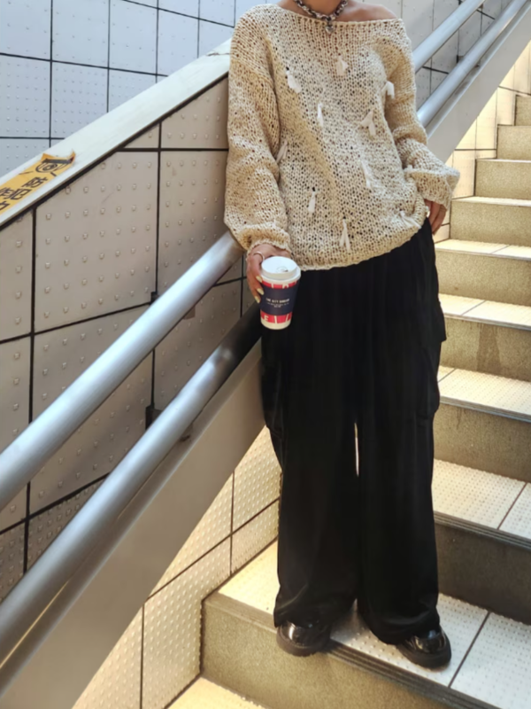 帶狀紗蝴蝶結寬版針織衫