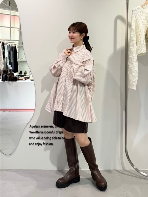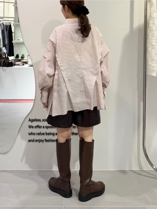 不規則打摺設計條紋襯衫