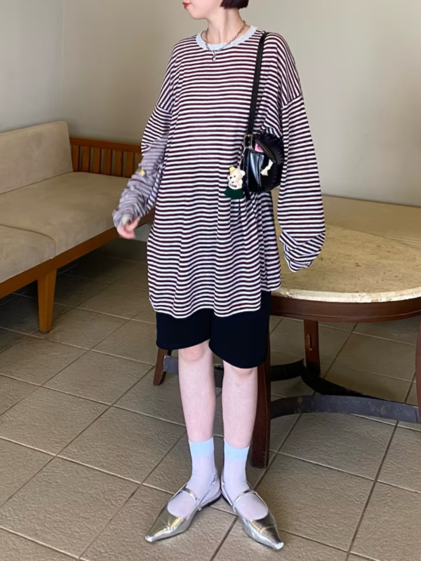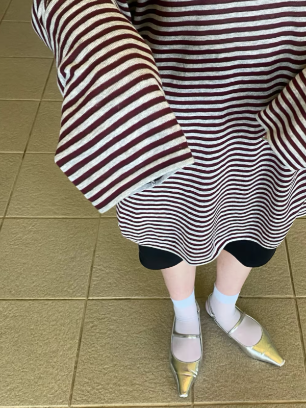 透膚橫紋寬鬆針織衫