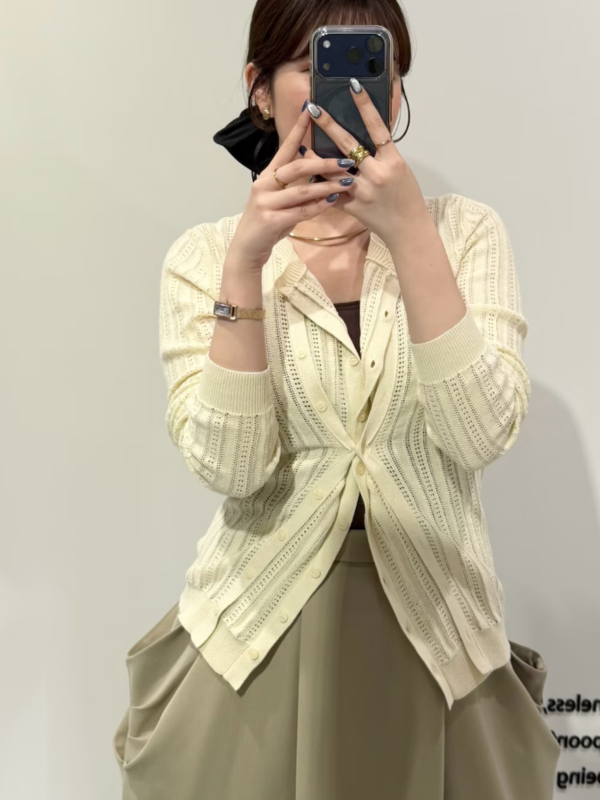 雙門襟鏤空針織衫