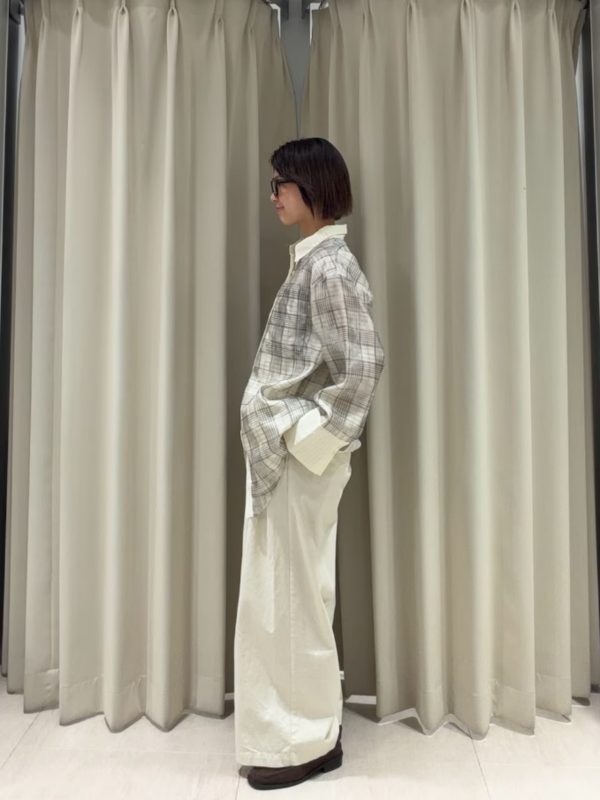 透膚格紋層次襯衫