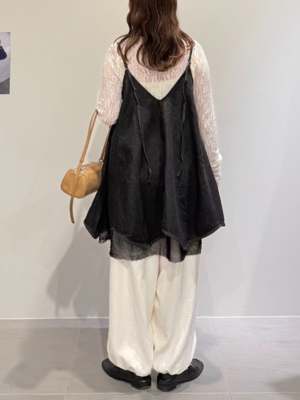 網狀層次牛仔細肩帶洋裝