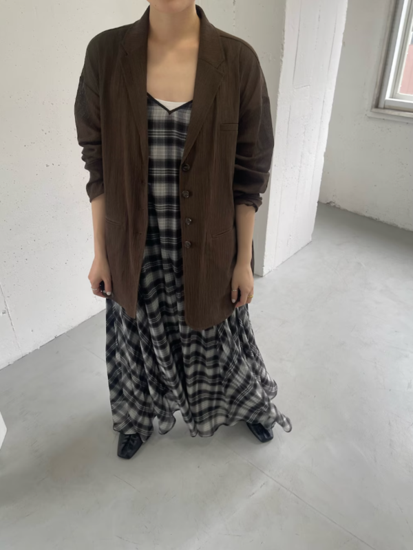格紋百褶細肩帶洋裝