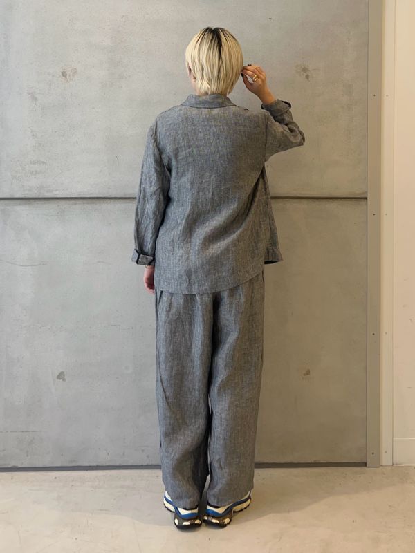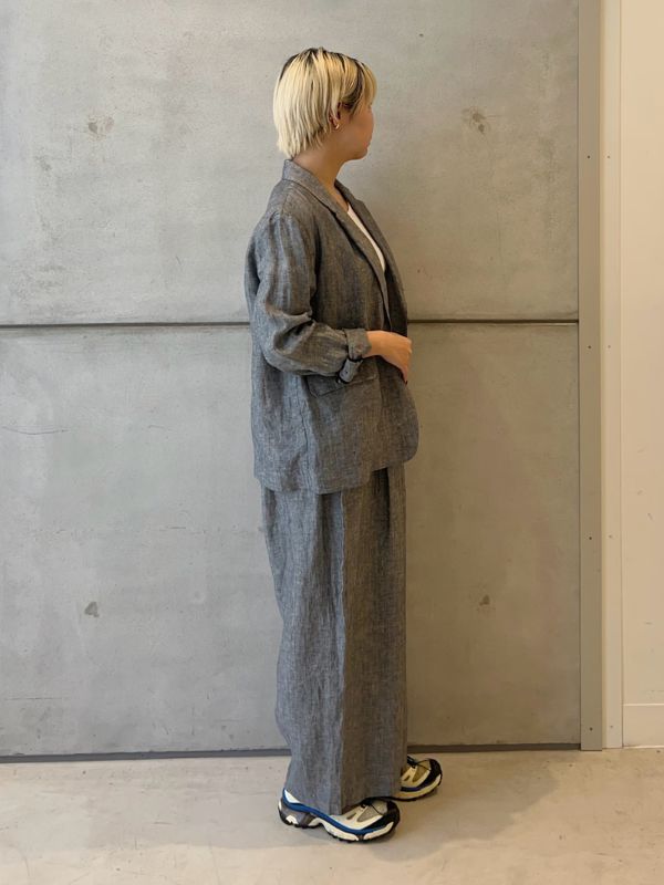 人字紋亞麻碎褶寬褲