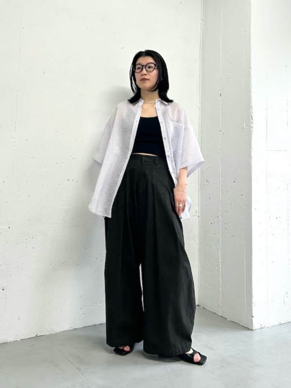 仿舊感打褶寬褲
