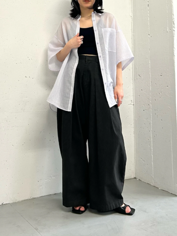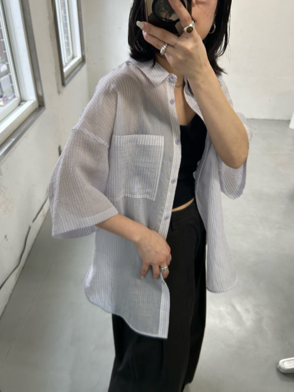 透膚直條紋寬版襯衫