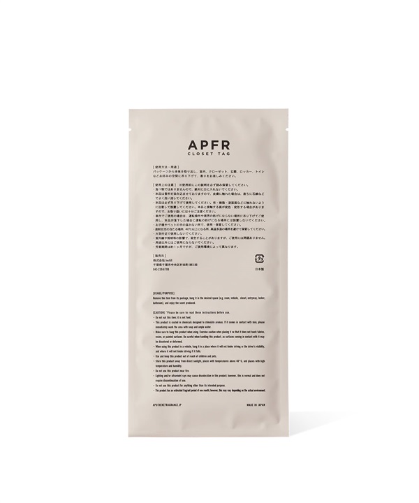 APFR(Apotheke Fragrance)是由創辦人菅澤圭太於2011年創立的日本香氛品牌。靈感來自世界各地的傳統香料、中藥文化、自然哲學、飲食、音樂與藝術,結合現代美學與日本職人精神,打造出獨具風格的香氛體驗。所有居家香氛產品皆在千葉縣的自家工廠手工製作。品牌理念是將香氣融入日常生活中,並以香味作為情感的媒介,喚醒美好的記憶。