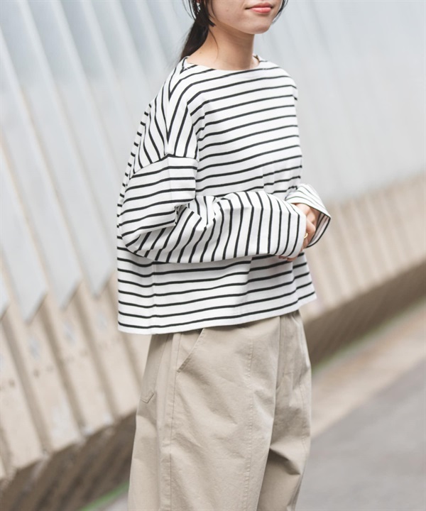 FORK&SPOON 短版船型領橫紋上衣