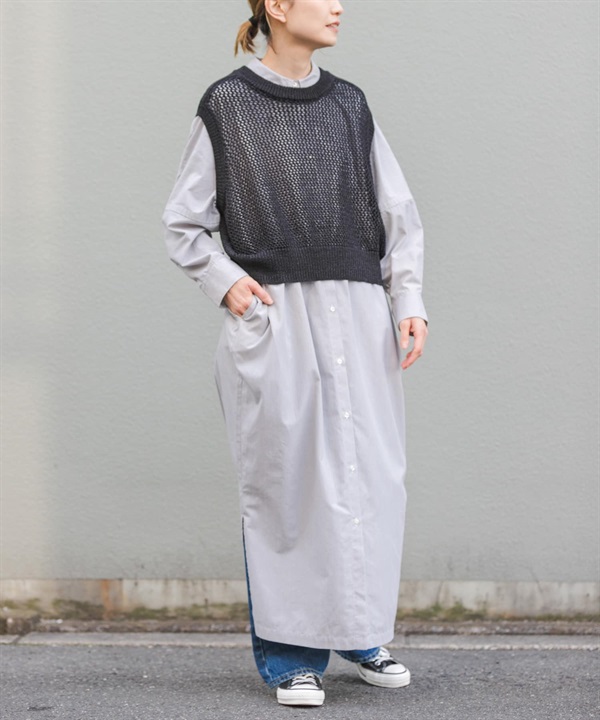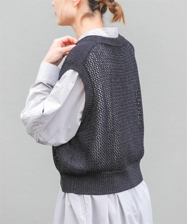 FORK&SPOON 紙編網狀針織背心