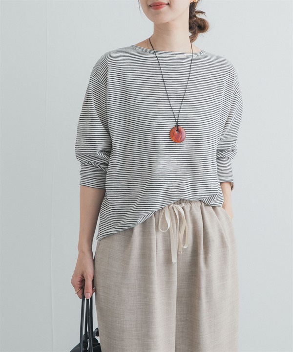 粗節紗細橫紋T恤