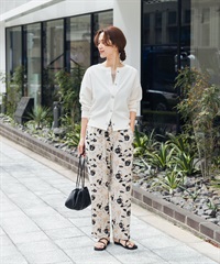 罌粟印花碎褶長褲