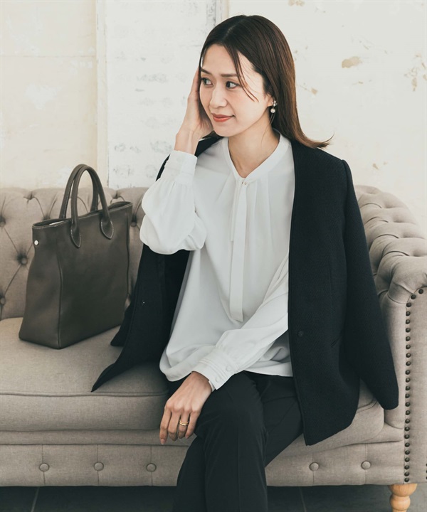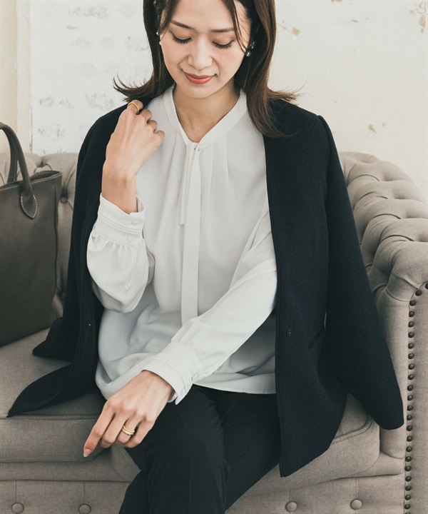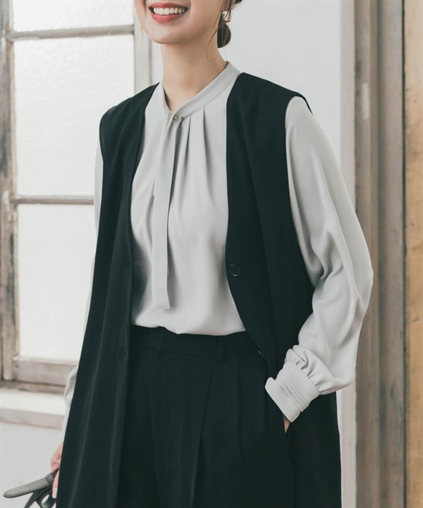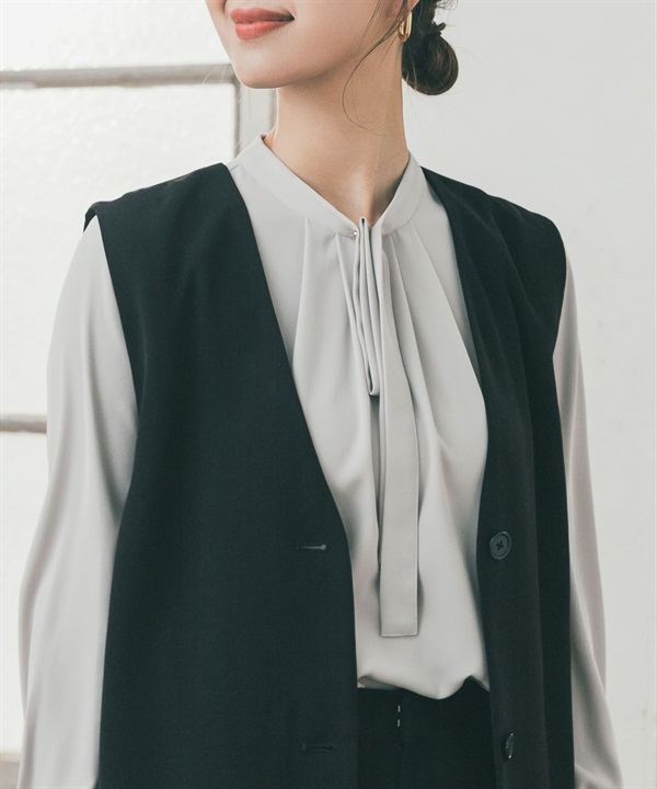 原子扣領結打褶罩衫