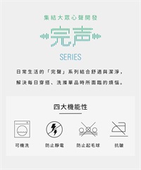 兼具可機洗、防起毛球、防靜電、EASY CARE機能的高機能材質。