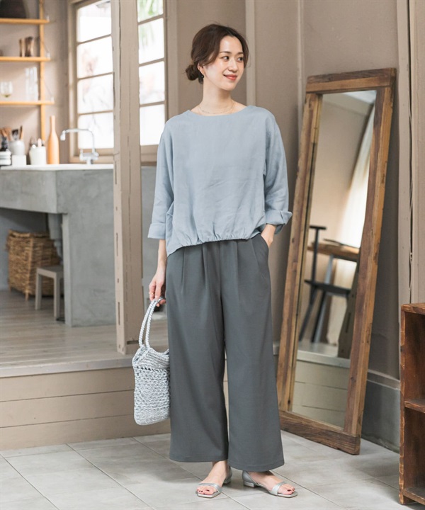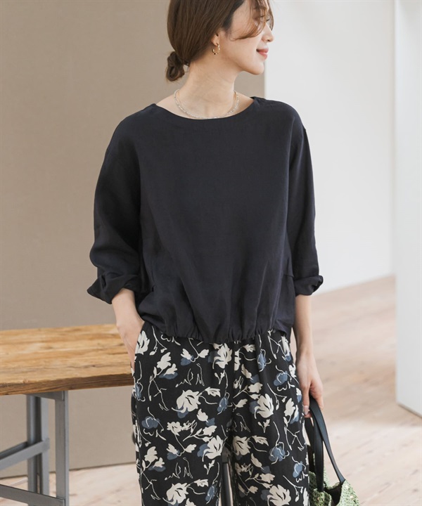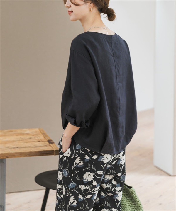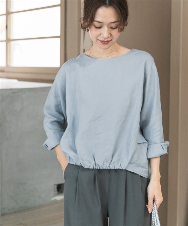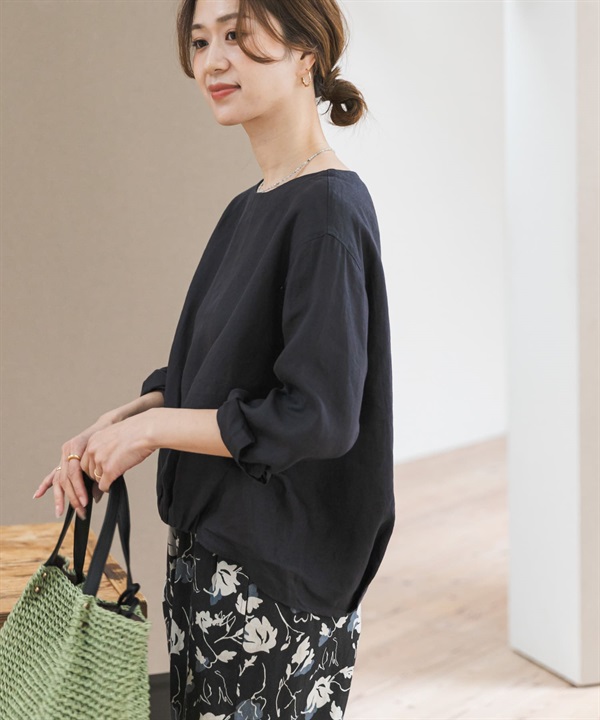 正面碎褶設計亞麻套衫