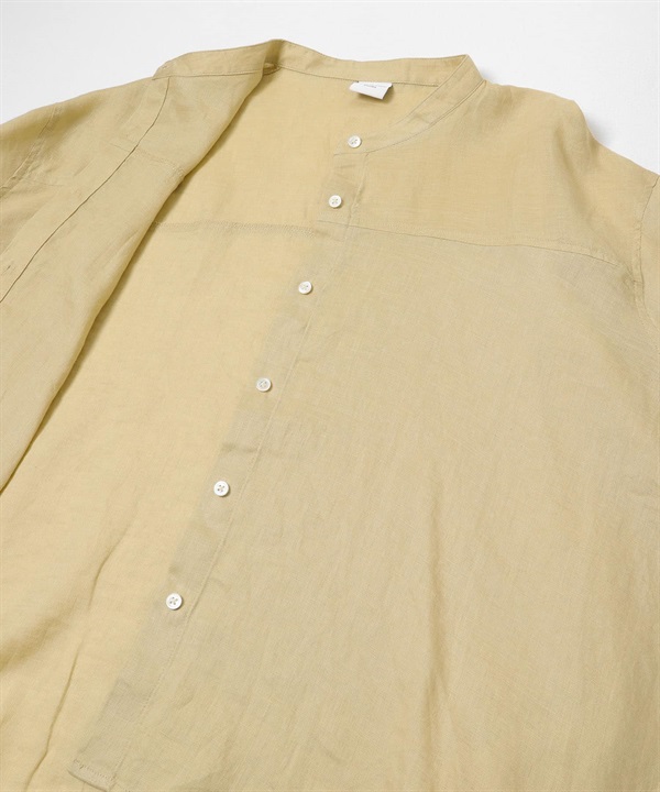 正面打褶立領襯衫