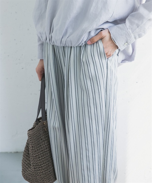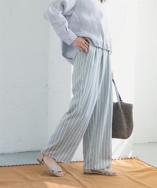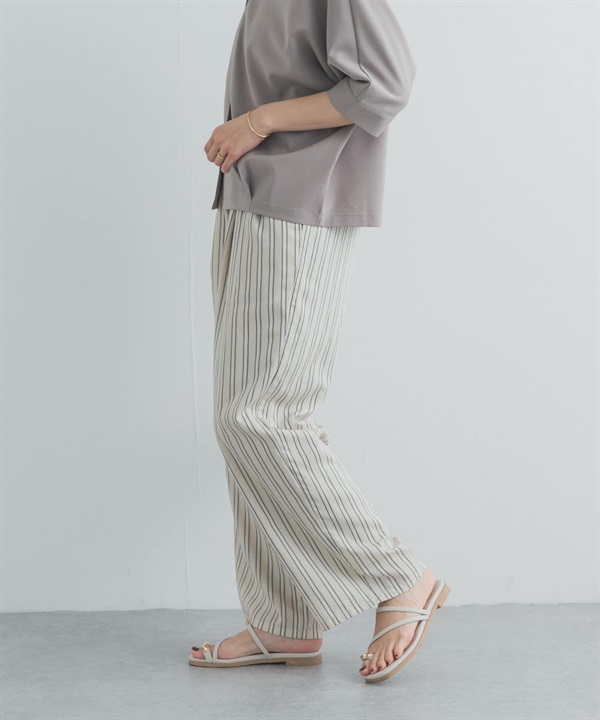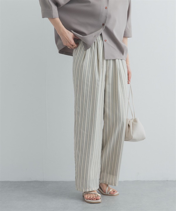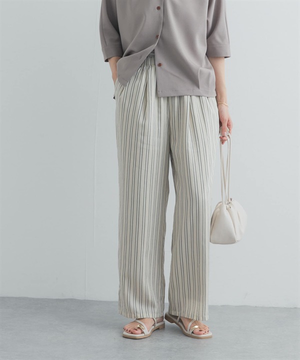 直條紋打褶輕便長褲