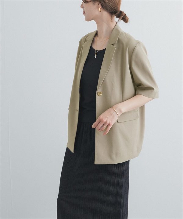 不易皺的EASY CARE機能材質,短袖設計西裝外套。