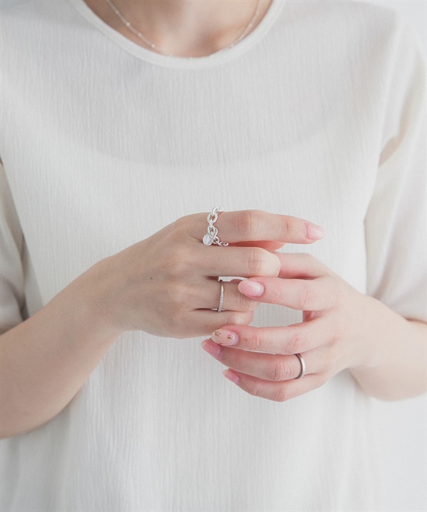 天然石×925純銀鍊條戒指