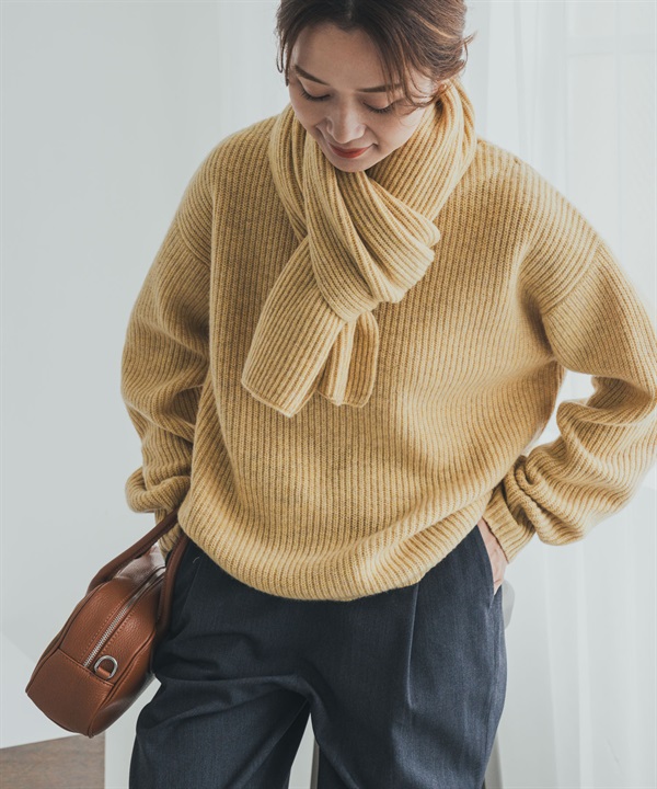 F by ROSSO 馬海毛針織衫 × 針織領巾