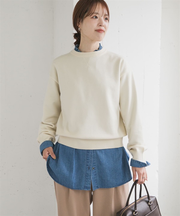 簡約的圓領及三角縫法類似大學T的設計,能隨興套上。