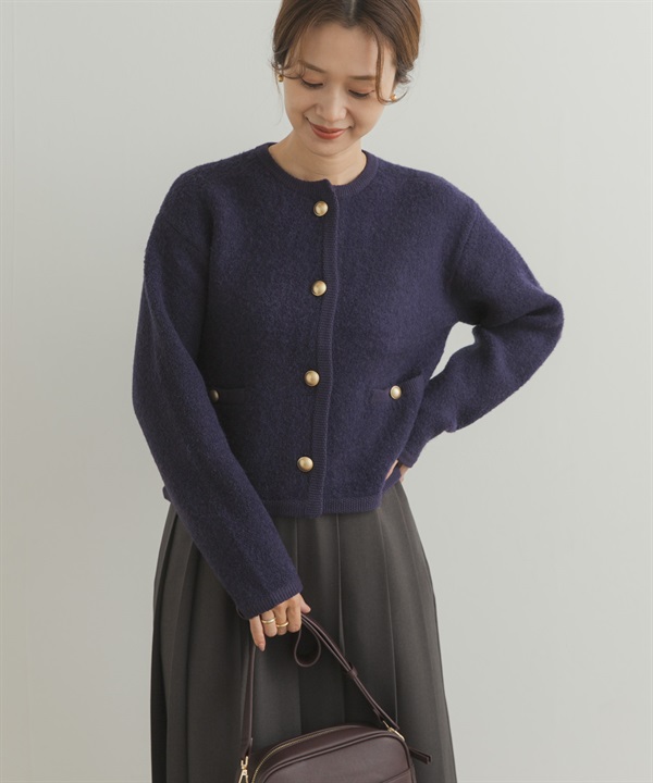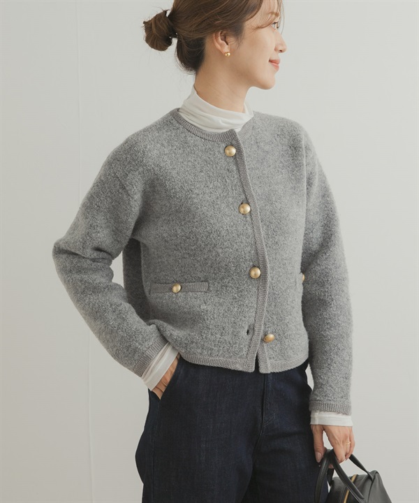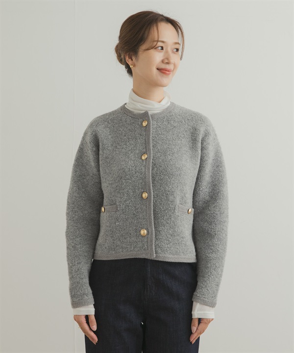 漢密爾頓羊毛畦編圓領開襟衫