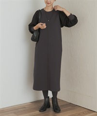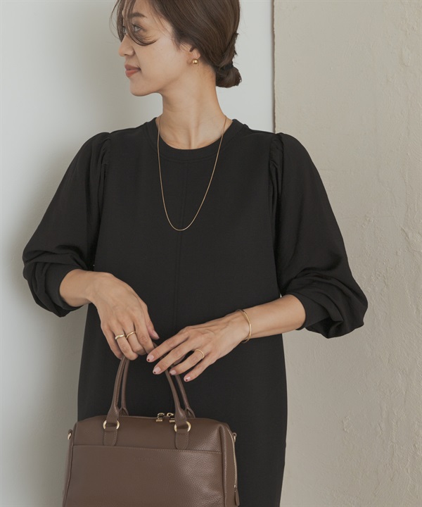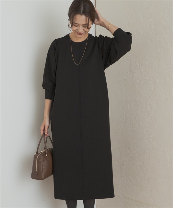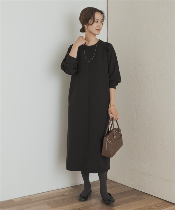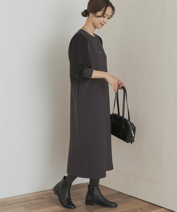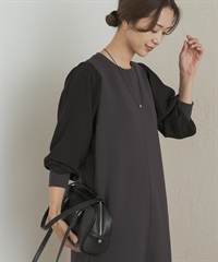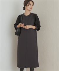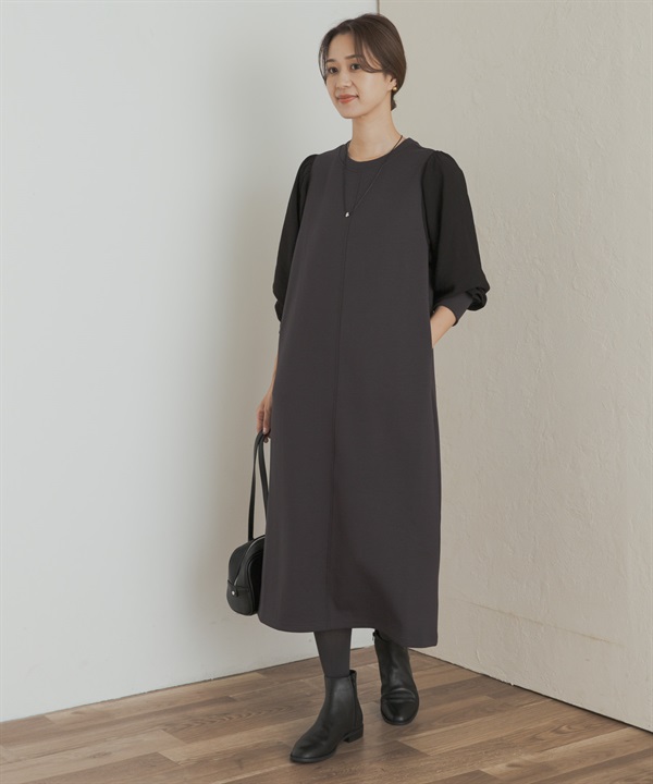 蓬袖拼接洋裝