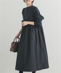 蓬袖拼接洋裝