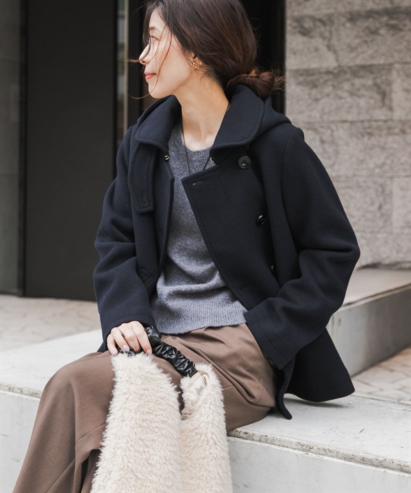 Super140起毛加工2WAY立領海軍大衣