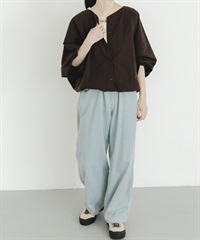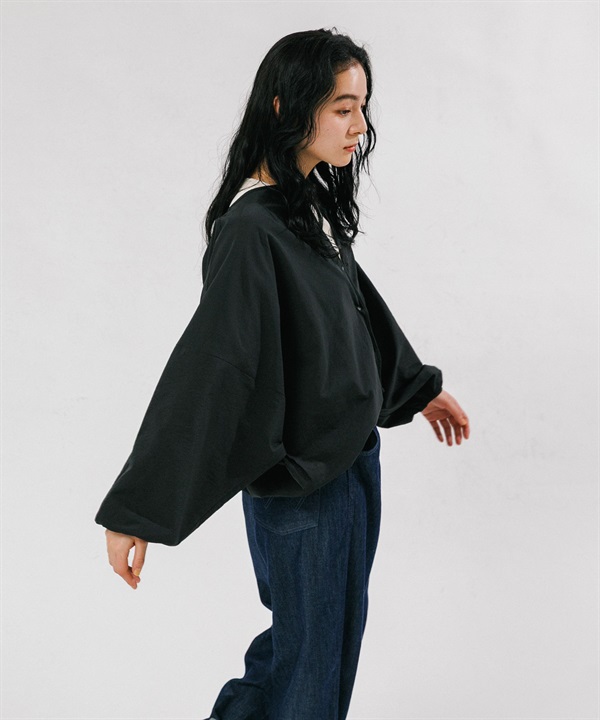 附領巾寬鬆短版襯衫