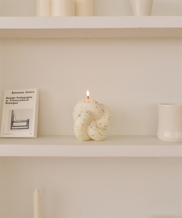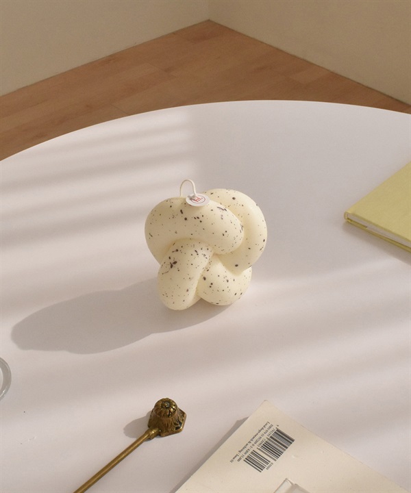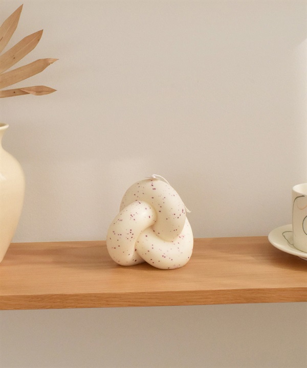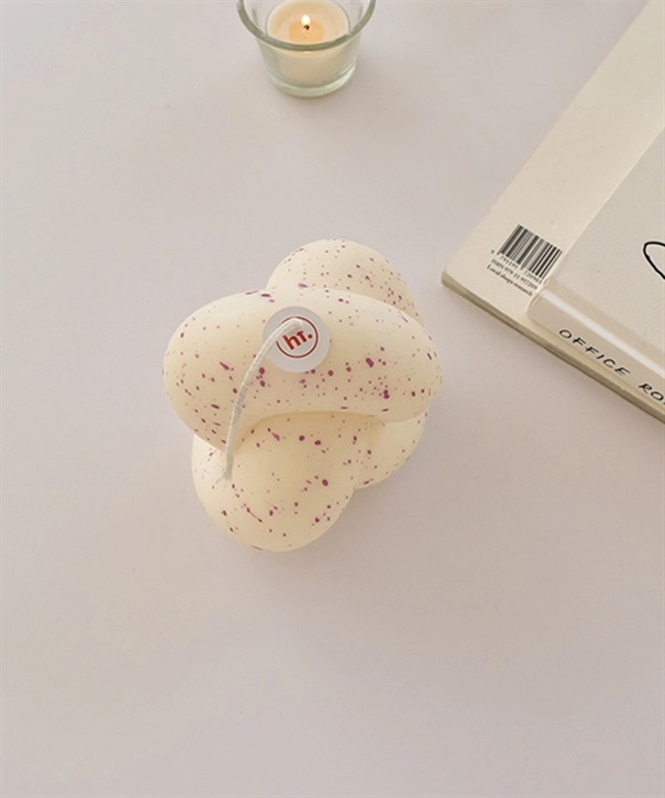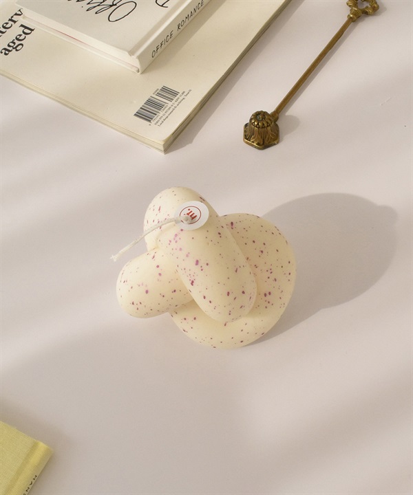 honey flamingo的扭結系列設計蠟燭。由豐滿的管狀扭成和諧有趣的形狀,蠟燭上佈滿紫色的圓點。蠟燭芯上有honey flamingo的標籤,使用時請先將標籤取下,將燭芯剪至0.5公分之後再點燃。