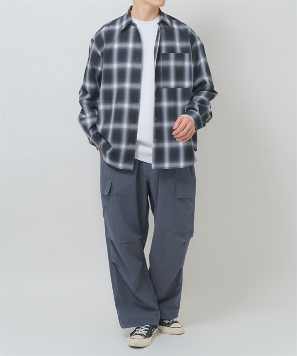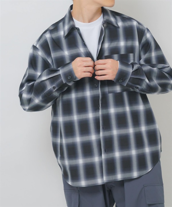漸層格紋基本領輕量襯衫