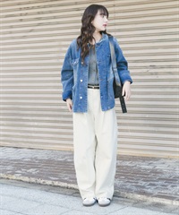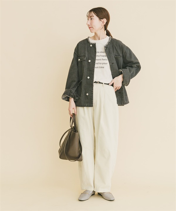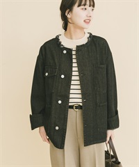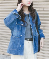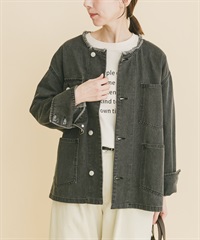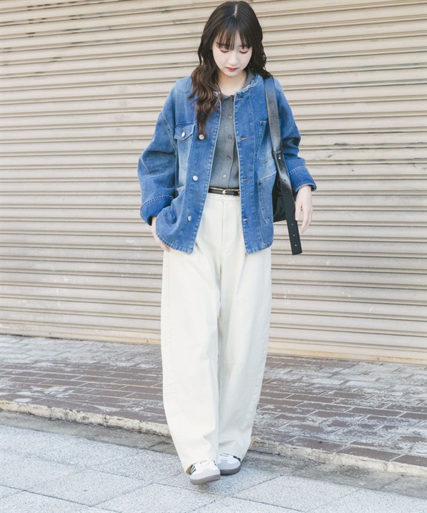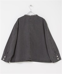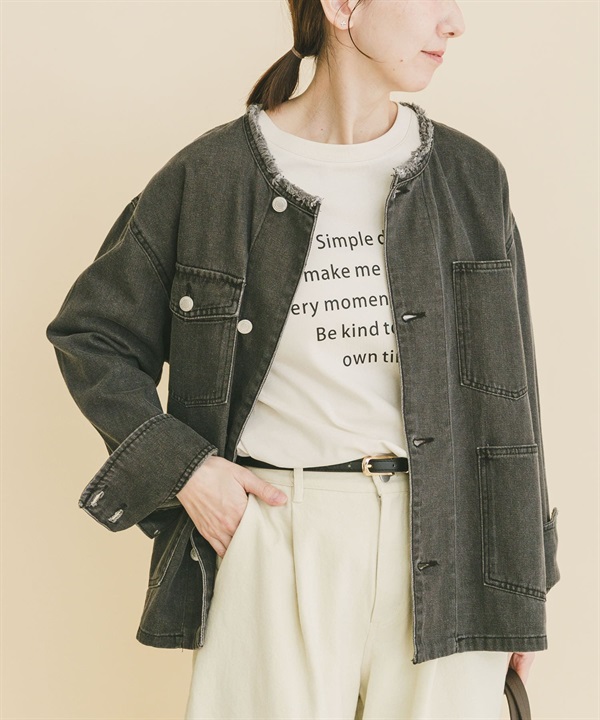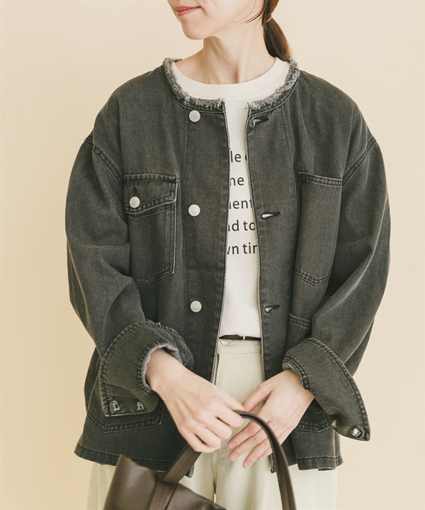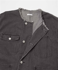 寬版無領牛仔外套