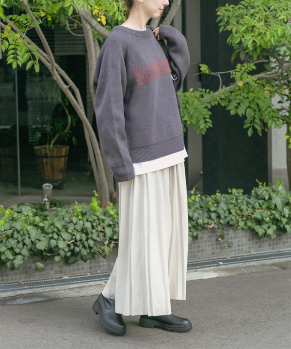 寬羅紋拼接針織衫