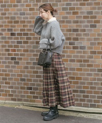 寬羅紋拼接針織衫