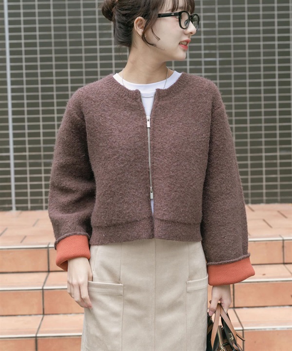圈圈紗拉鍊短版開襟衫