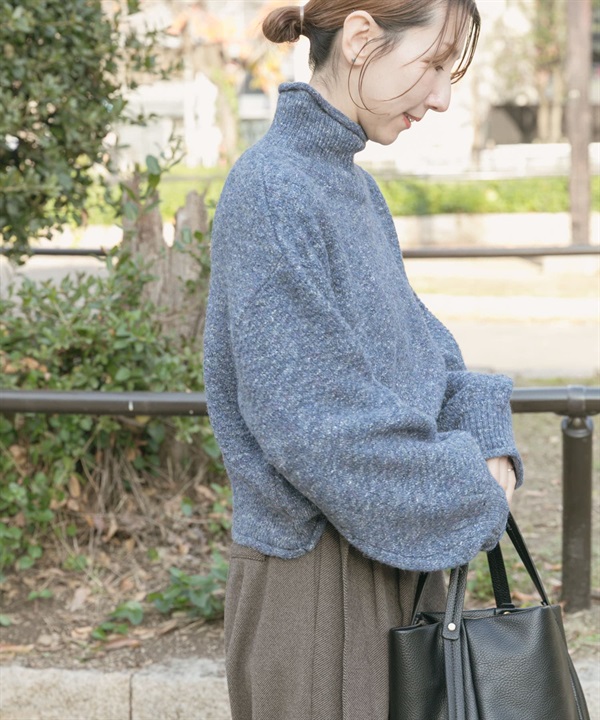 可水洗羊毛高領寬版針織衫