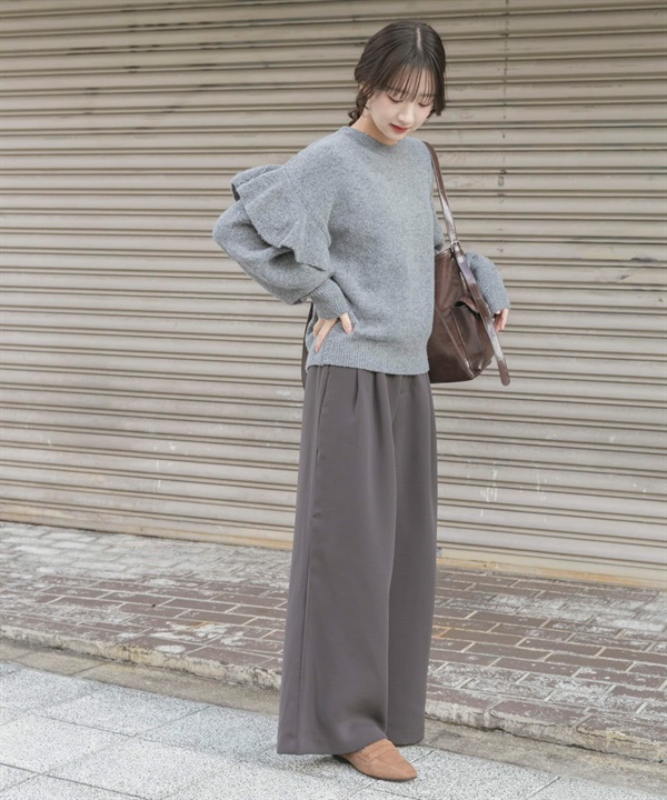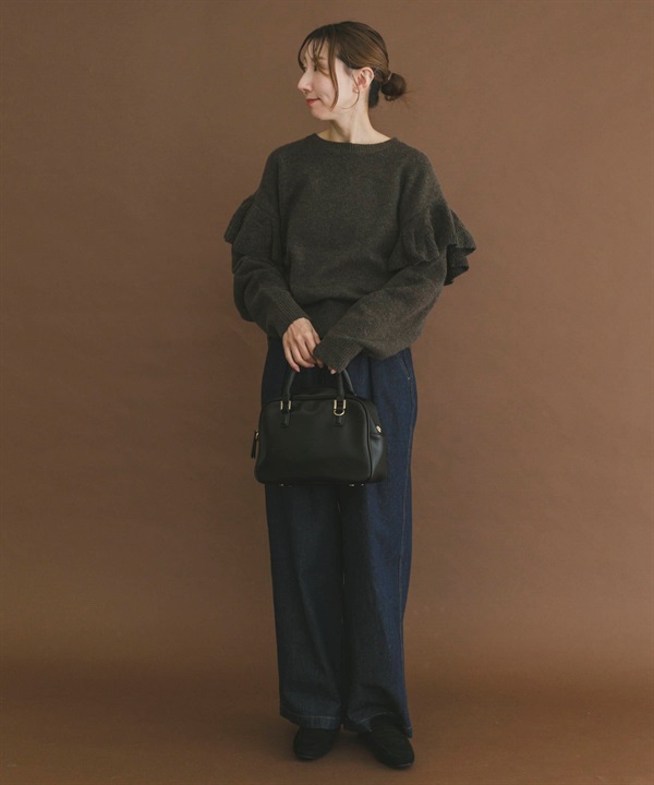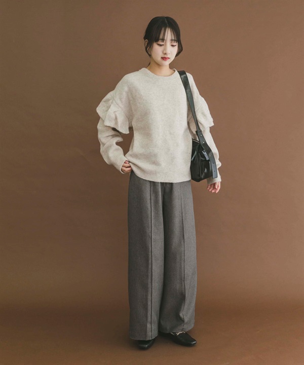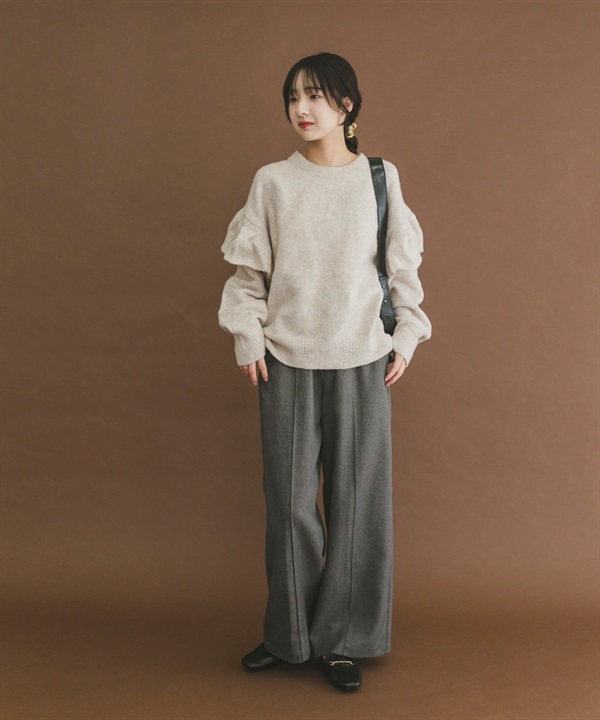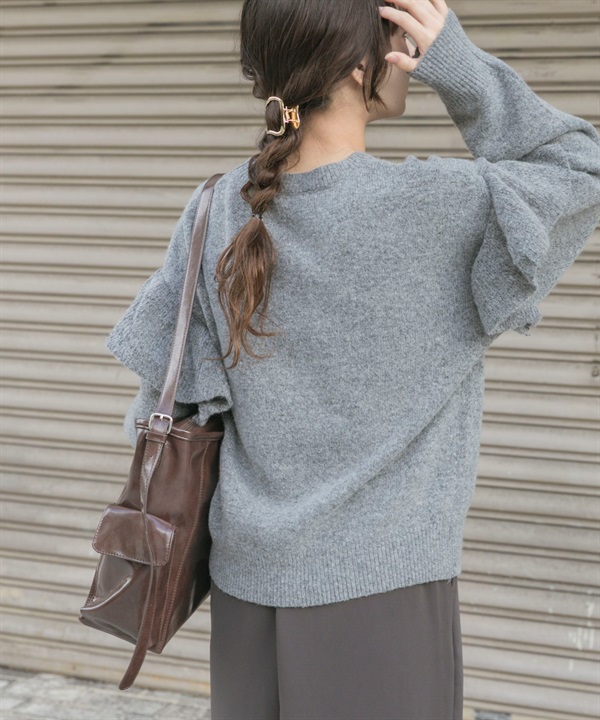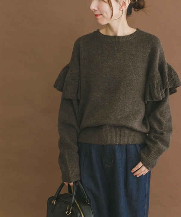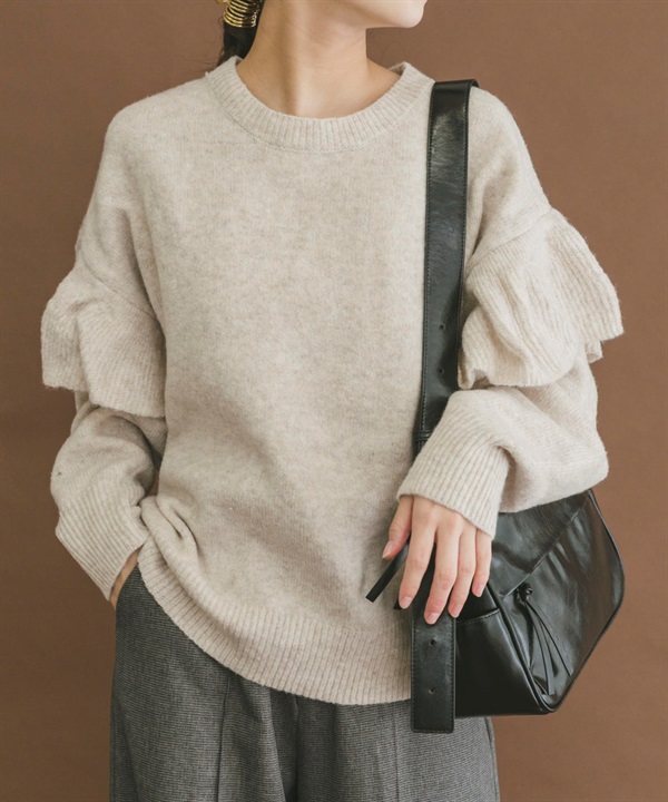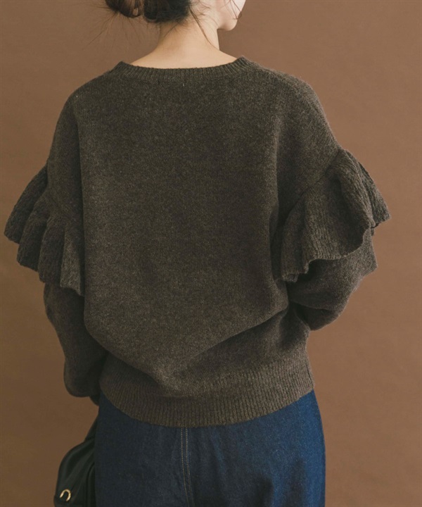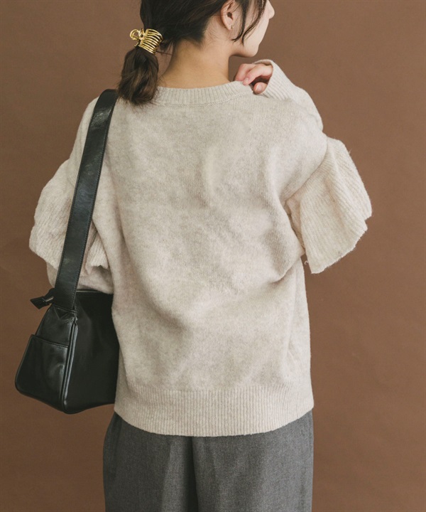 荷葉邊圓領針織衫