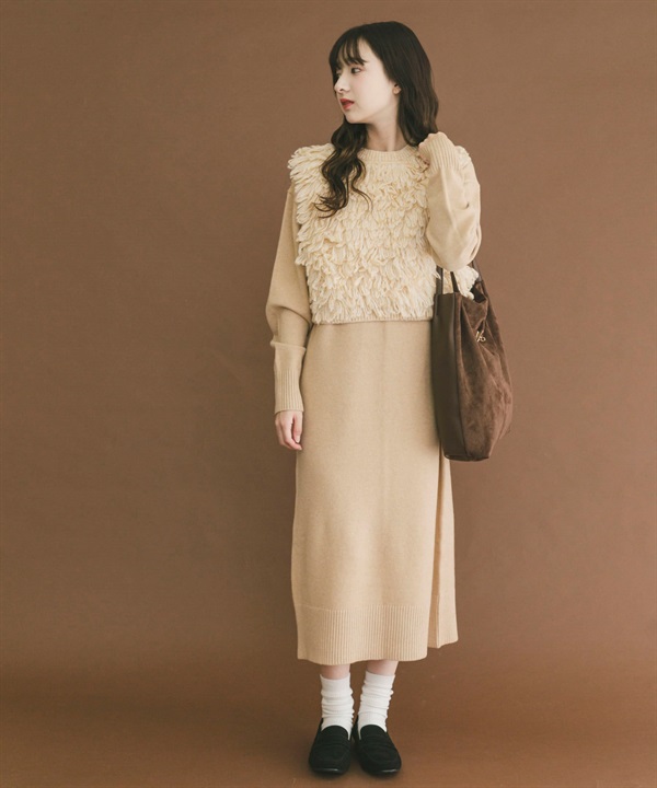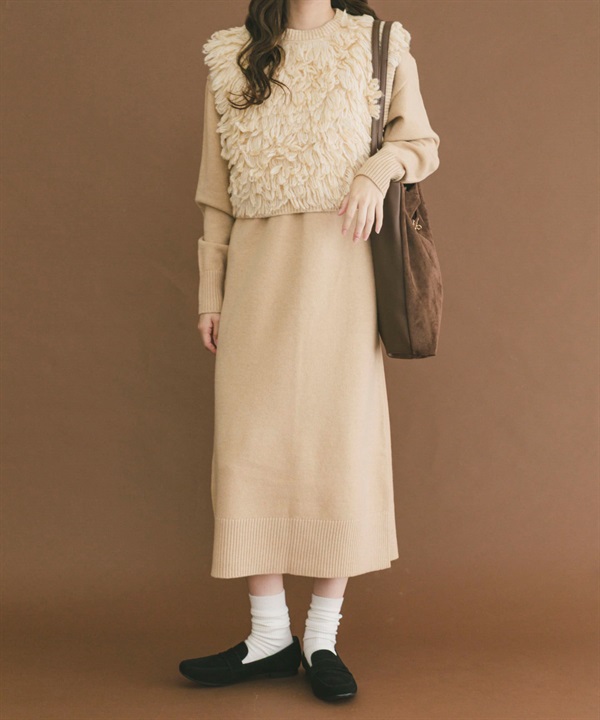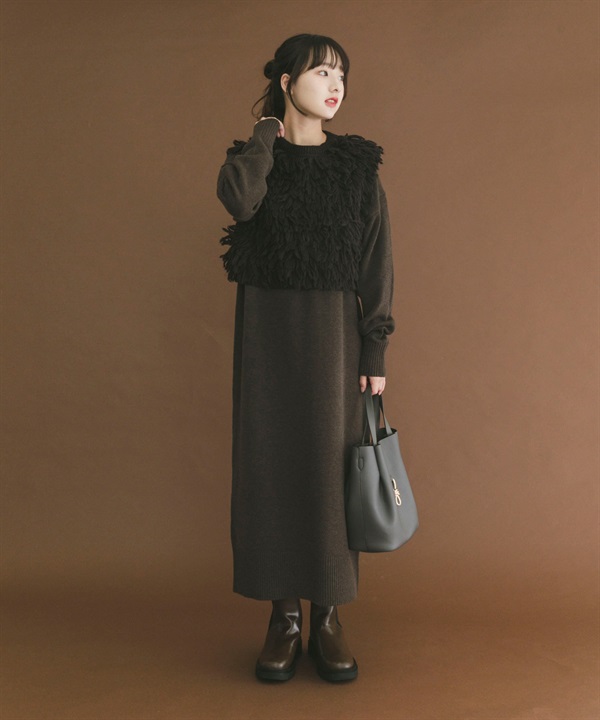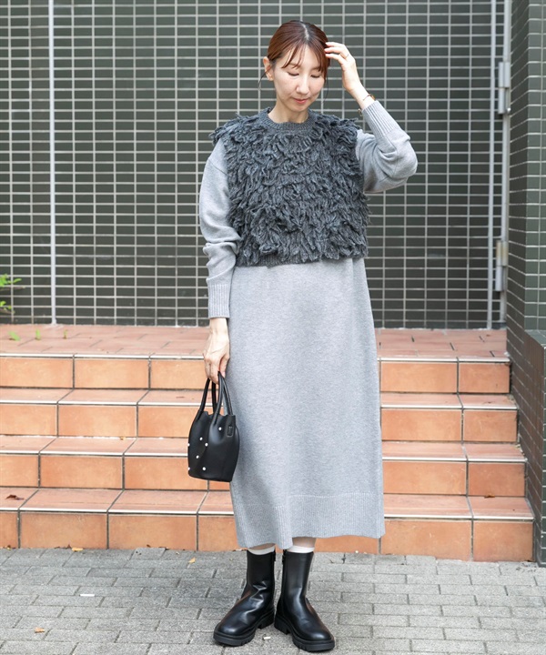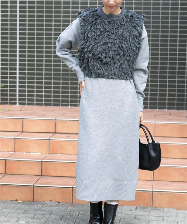 【成套組合】毛圈紗針織背心 × 洋裝
