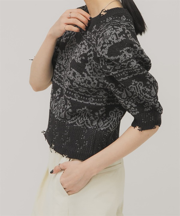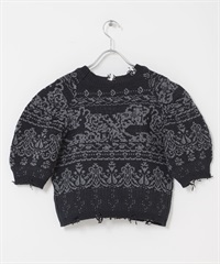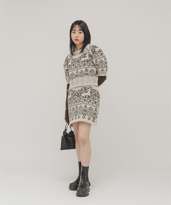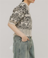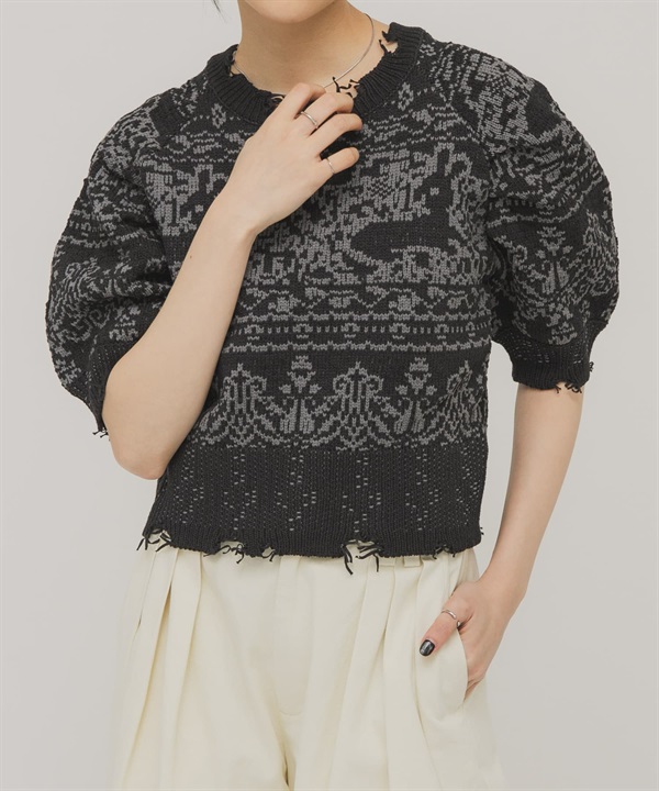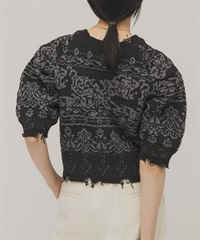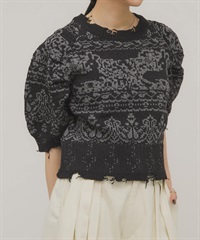 緹花蓬袖針織衫(可成套搭配)