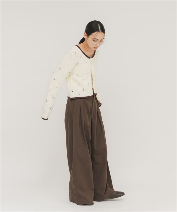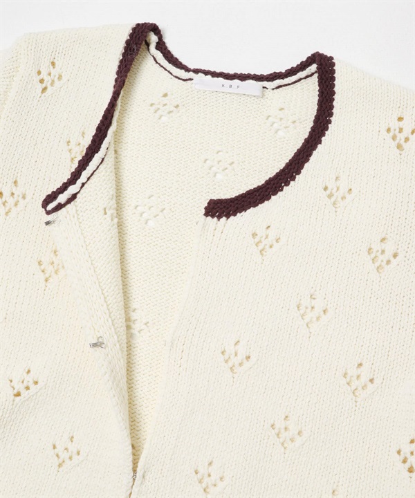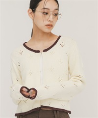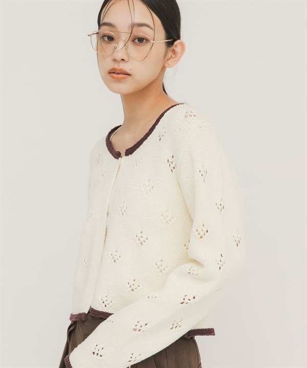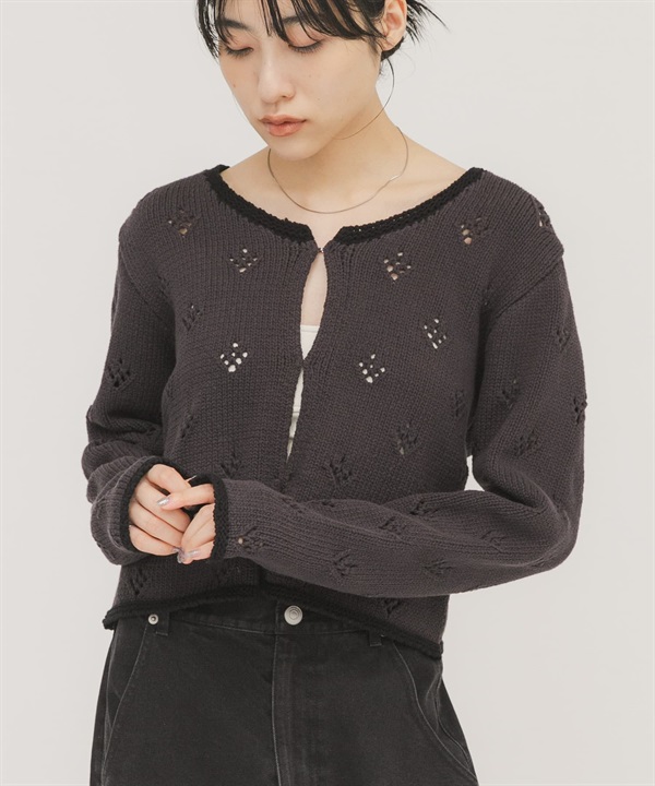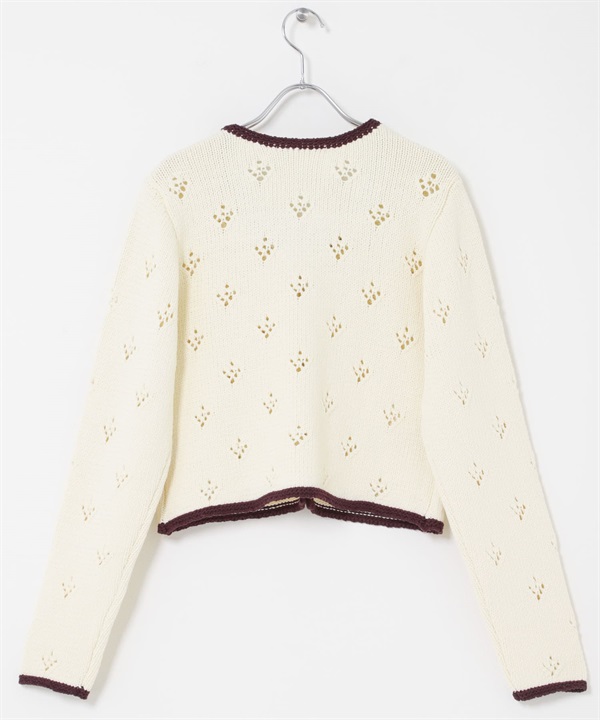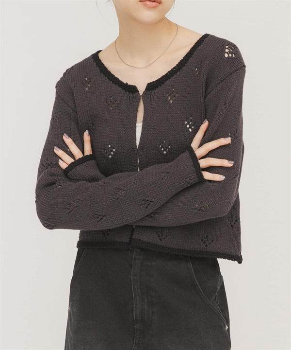 孔眼設計短版針織開襟衫