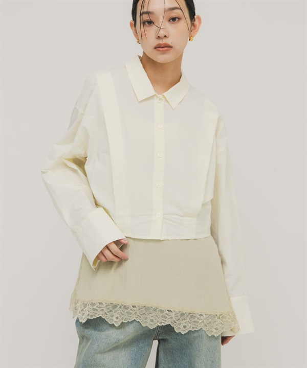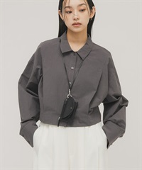 下擺打褶短版襯衫