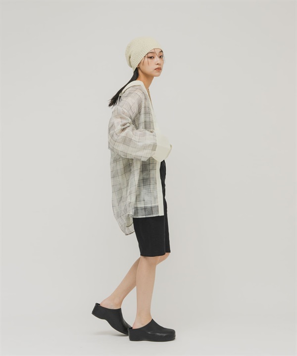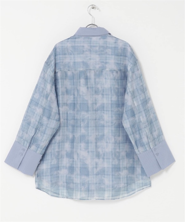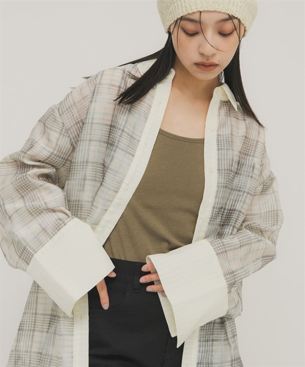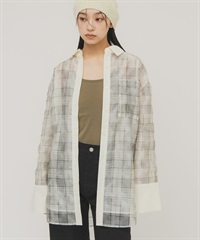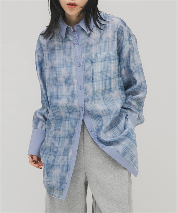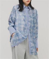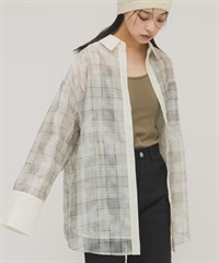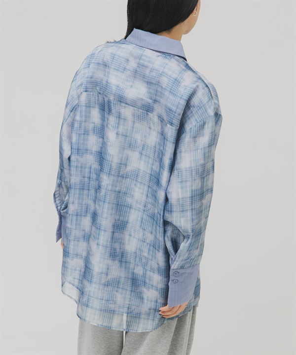 透膚格紋層次襯衫
