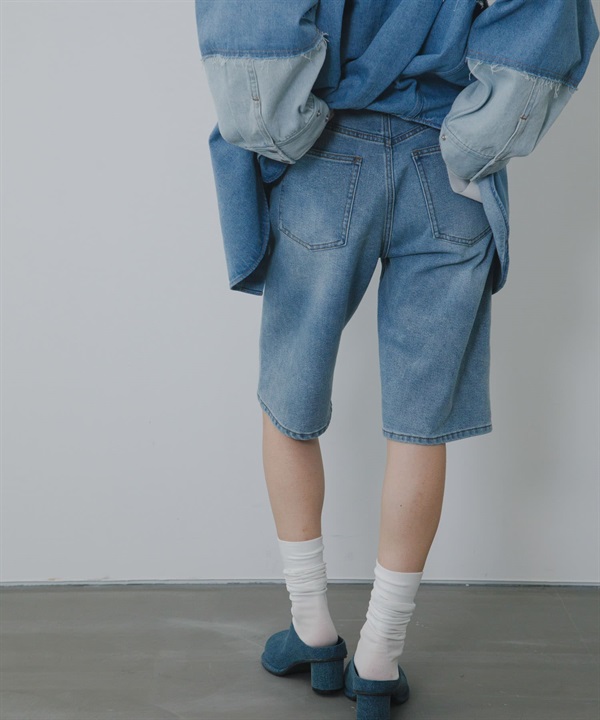讓穿搭新鮮感UP的短褲。像是單車褲的褲長,採用休閒感的牛仔布。雖是窄管設計,彈性材質穿著很舒適。推薦搭配休閒上衣、夾克。