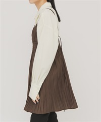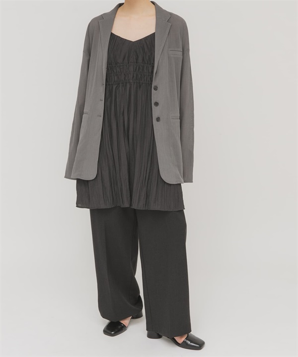 正面打褶立領襯衫